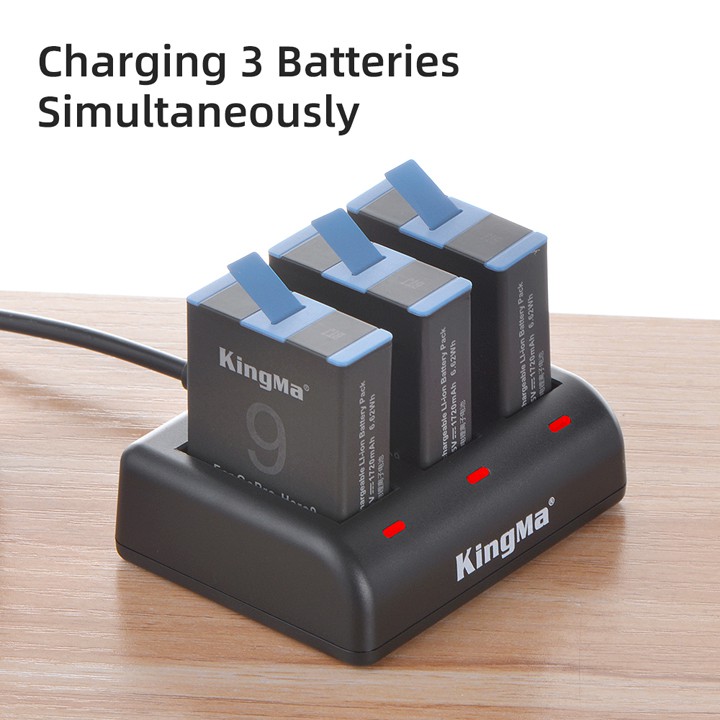 Cameras & Flycam > Phụ kiện máy ảnh > Bộ sạc pin || Đốc sạc 3 pin + 2 Pin sạc GoPro Hero 9 KINGMA - Hàng chính hãngCòn hàng