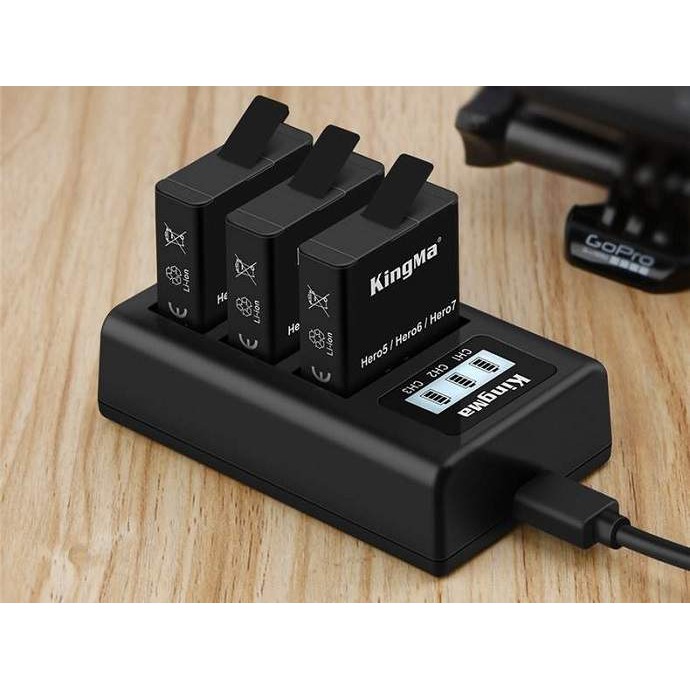 Đốc sạc 3 pin GoPro Hero 8 7 6 5 - Có màn hình hiển thị KINGMA