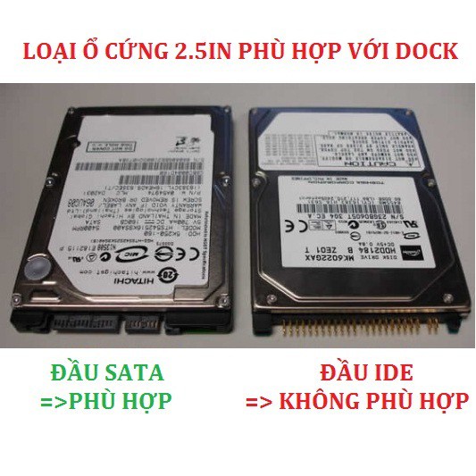 Lưu ý: dock này chỉ sử dụng cho các loại ổ cứng có cổng giao tiếp SATA (hay Series ATA) cả ổ 2.5 của laptop và 3.5 của máy bàn, không dùng được cho các loại ổ giao tiếp IDE (hay parallel ATA hoặc PATA) đời cũ.