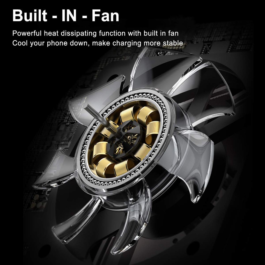 - Đặc biệt được tích hợp bộ quạt hút tản nhiệt công xuất mạnh sẽ làm cho cả chiếc sạc cũng như điện thoại sạc phía trên giảm nhiệt độ khi sạc giúp cốc sạc được ổn đinh hơn các dòng không có quạt tản nhiệt..