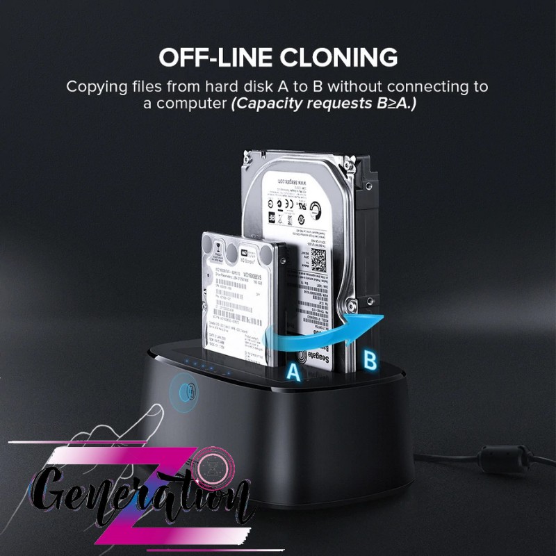 Dock 2 cổng SATA HDD/SSD Ugreen 50845 hỗ trợ công nghệ Computer-independent Offline Cloning, công nghệ này giúp bạn có thể truyền tải dữ liệu giữa hai ổ cứng với nhau mà không cần kết nối với máy tính, giải pháp hoàn hảo để lưu trữ dữ liệu dung lượng lớn và cần xử lý nhiều ổ cứng cùng lúc, thao tác đơn giản chi cần 1 phím bấm.