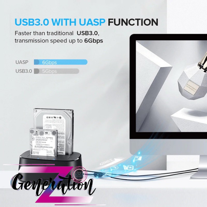 Dock HDD/SSD 2 Khay SATA 2.5/3.5" Hỗ trợ 12TB, Tốc độ UASP 6Gbps Ugreen 50845Dock dữ liệu ổ cứng SATA HDD/SSD USB 3.0 Ugreen 50742 là phụ kiện giúp đọc và ghi giữ liệu từ ổ cứng với máy tính hỗ trợ truy xuất cùng lúc 2 ổ cứng SSD và HDD dung lượng lên đến 12TB với tốc độ lên đến 5Gbps cho kết nối USB 3.0 và hỗ trợ công nghệ UASP giúp tăng tốc độ truyền tải lên đến 6Gbps (Chú Ý: UASP là chỉ có sẵn cho WIN8 Mac OS 8&9).