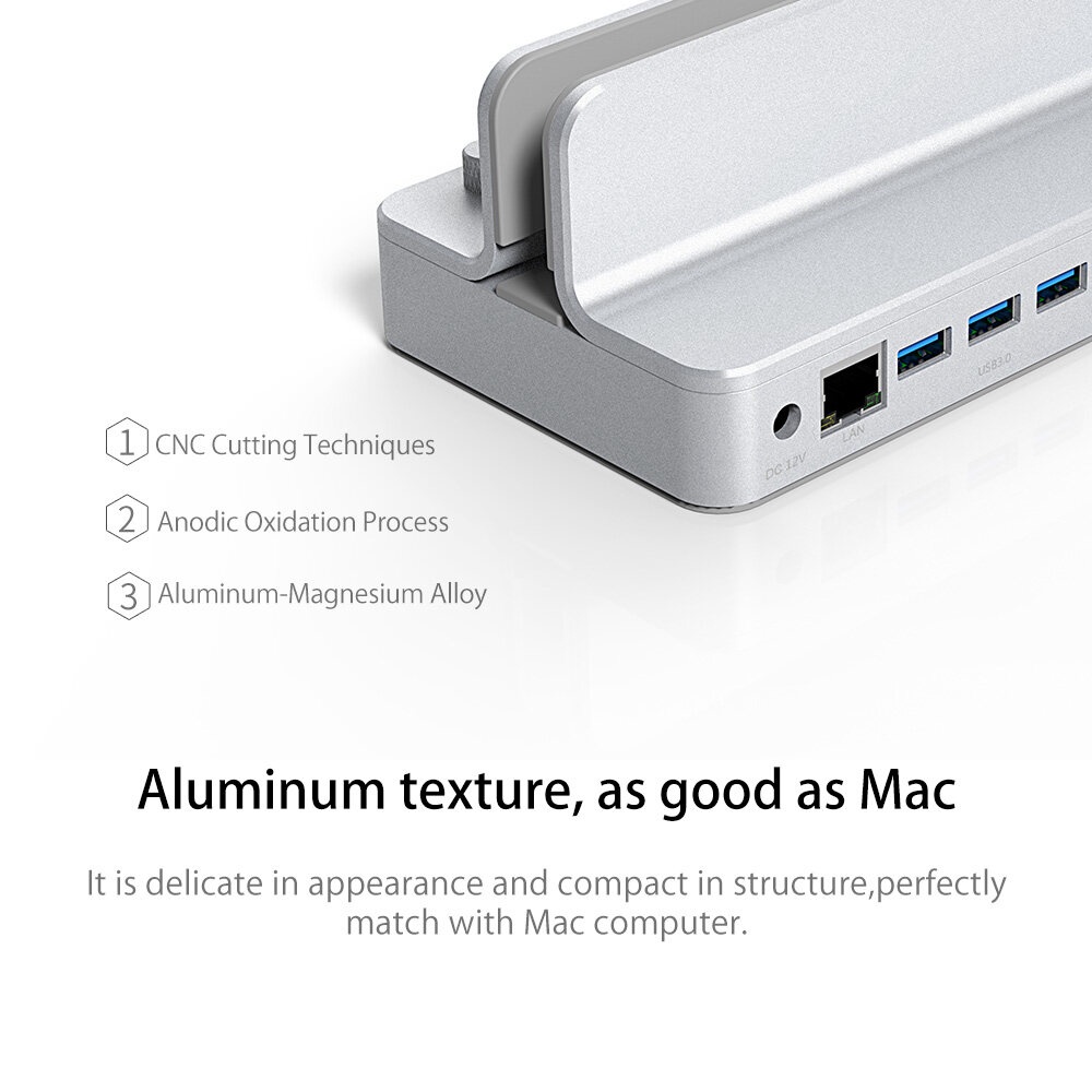 Giới thiệu Dock Kiêm Giá Đỡ Máy Tính Bằng Hộp Kim Nhôm Orico ANS6 - Cổng USB 3.0 X 3, 1 HDMI, 1 Cổng Lan RJ45, 1 Cổng 3.5 và 1 MIC