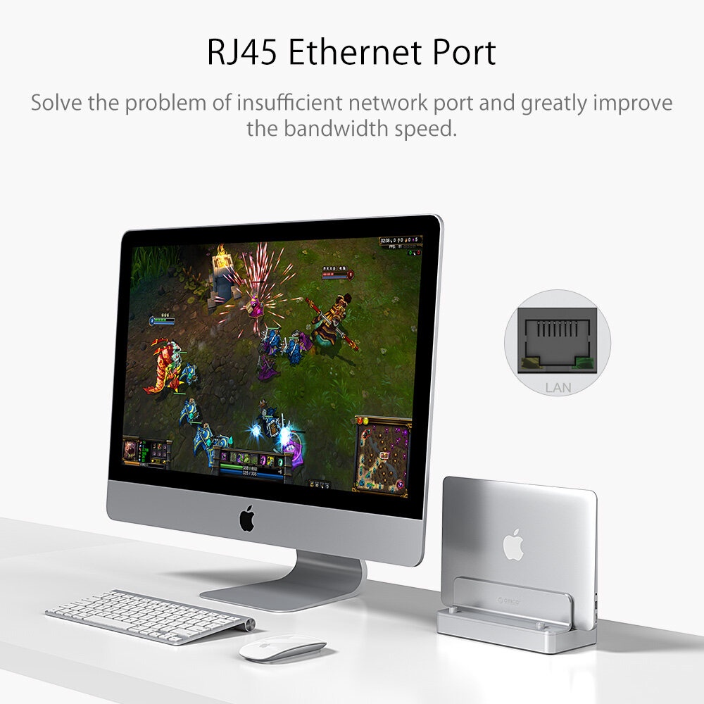 Máy tính & Laptop > Phụ Kiện Máy Tính > Bộ chia cổng USB & Đọc thẻ nhớ || Dock Kiêm Giá Đỡ Máy Tính Bằng Hộp Kim Nhôm Orico ANS6 - Cổng USB 3.0 X 3, 1 HDMI, 1 Cổng Lan RJ45, 1 Cổng 3.5 và 1 MICCòn hàng