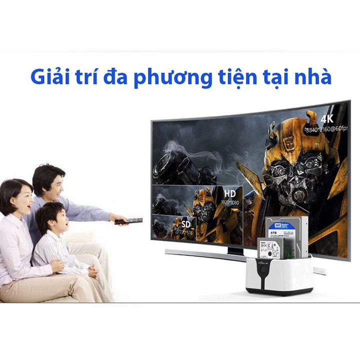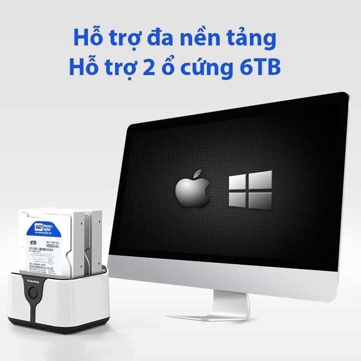 Hỗ trợ đồng thời 2 ổ cứng HDD/SSD/SSHD 3.5"/2.5" chuẩn SATA, tối đa 2x6TB