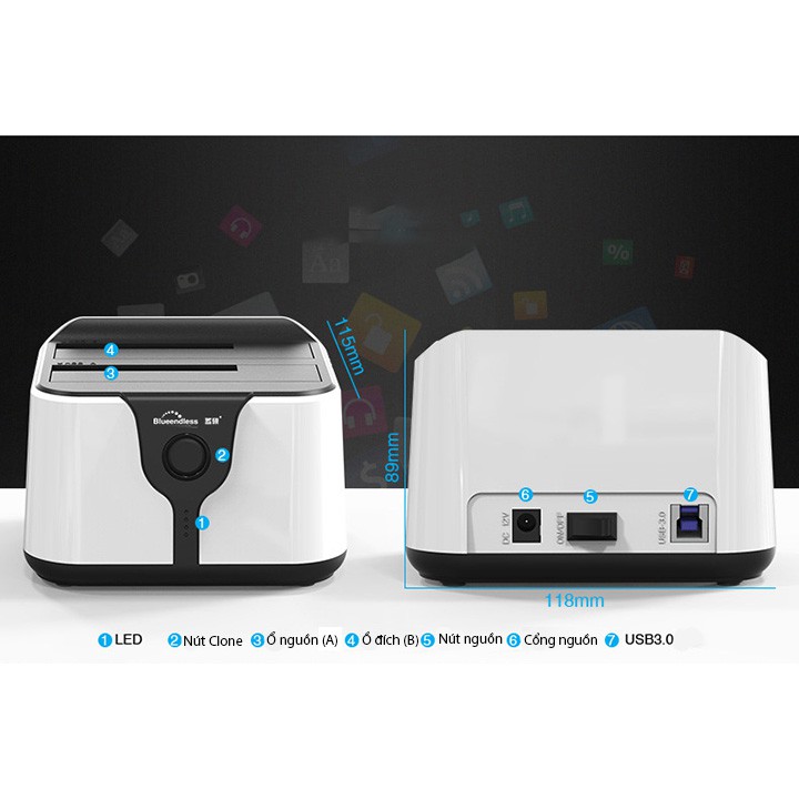 Máy tính & Laptop > Thiết Bị Lưu Trữ > Thiết Bị Đựng Ổ Cứng || [Mã 253ELSALE hoàn 7% đơn 300K] Dock ổ cứng SATA Blueendless HD05 hỗ trợ clone USB3.0 DK01Còn hàng