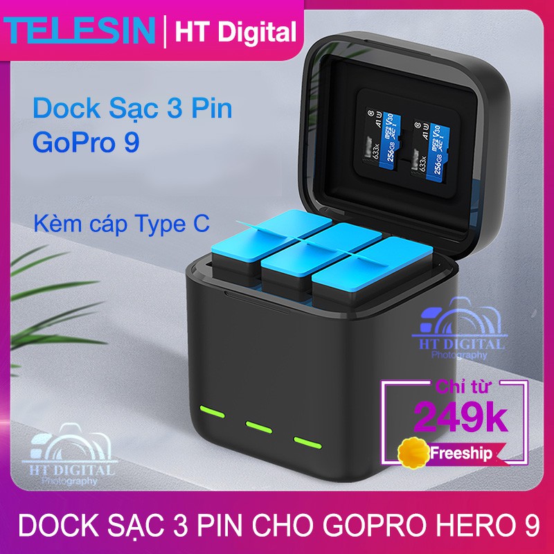 Dock sạc 3 pin Gopro 9 GoPro 10Hãng sản xuất: Telesin