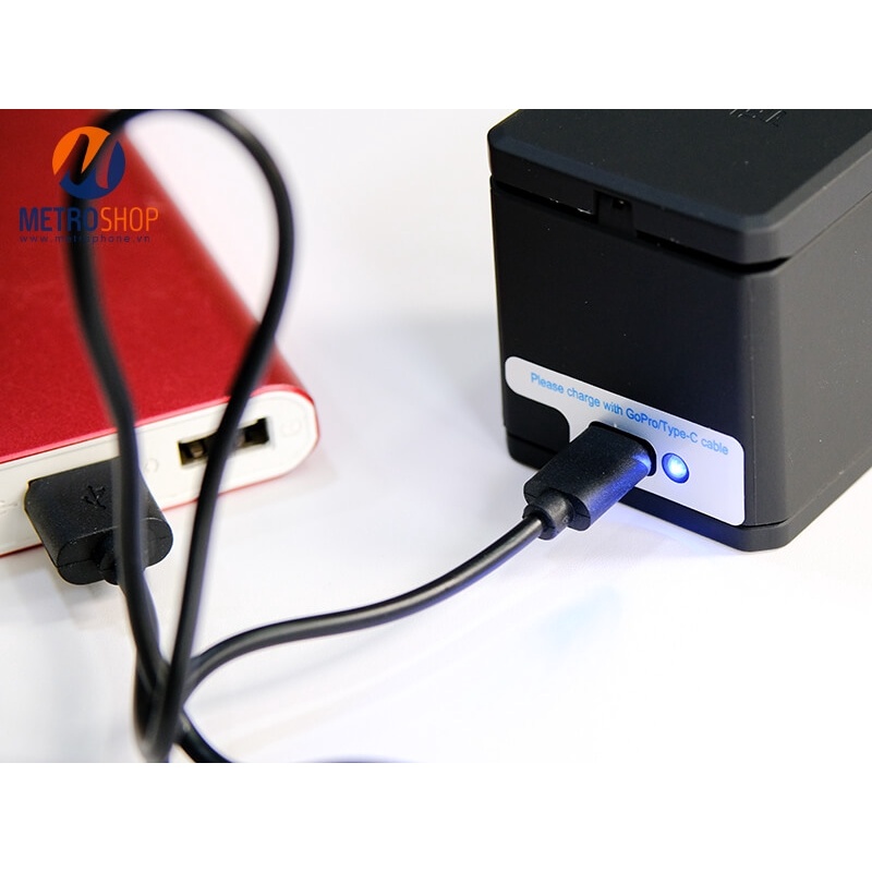 Dock sạc 3 pin Gopro 5 có thể sạc với pin chính hãng theo máy. Hoặc pin thay thế của Kingma hay Telesin. Đế sạc rời Gopro 5 tích hợp cổng kết nối Type-C có đèn LED báo nguồn. Trên Dock sạc Telesin có tích hợp đèn led trạng thái sạc, đèn hiển thị đỏ là đang sạc, khi chuyển xanh lá là đã sạc đầy pin.