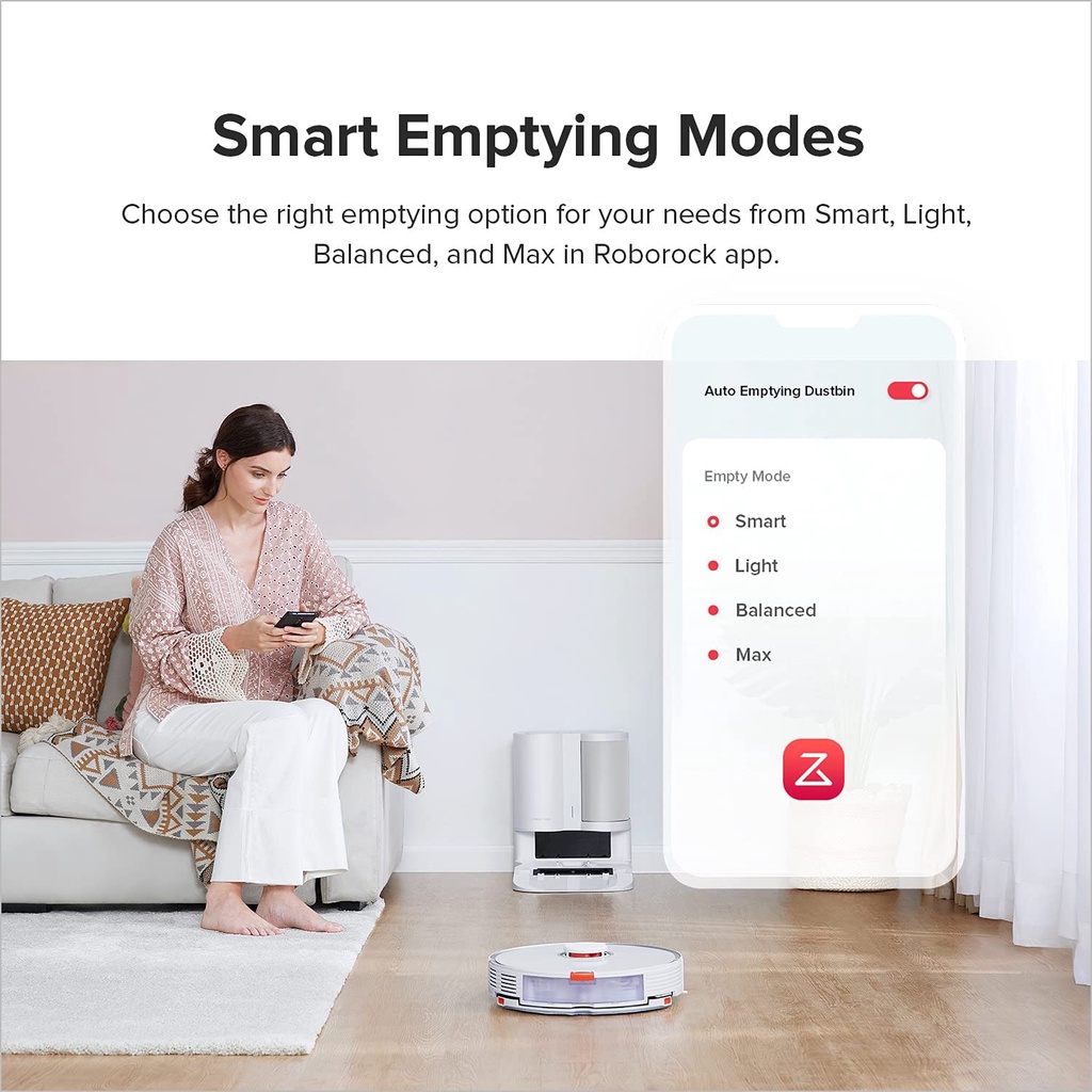 - Chế độ hút rác thông minh: Tùy chọn hút rác phù hợp với nhu cầu của bạn từ Thông minh, Nhẹ, Cân bằng và Tối đa. Ở chế độ Thông minh, việc hút rác sẽ được điều chỉnh động dựa trên thói quen dọn dẹp gần đây, tần suất làm sạch và hơn thế nữa.