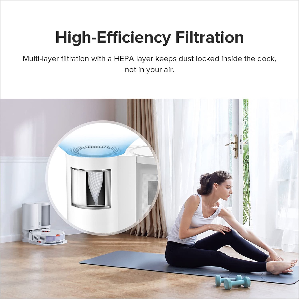 - Lọc không khí nhiều lớp: Nhiều lớp lọc không khí, bao gồm cả lớp được xếp hạng HEPA (H13), giữ cho bụi mịn không bị giữ bên trong đế, không bị thoát ra trong không khí nhà bạn.