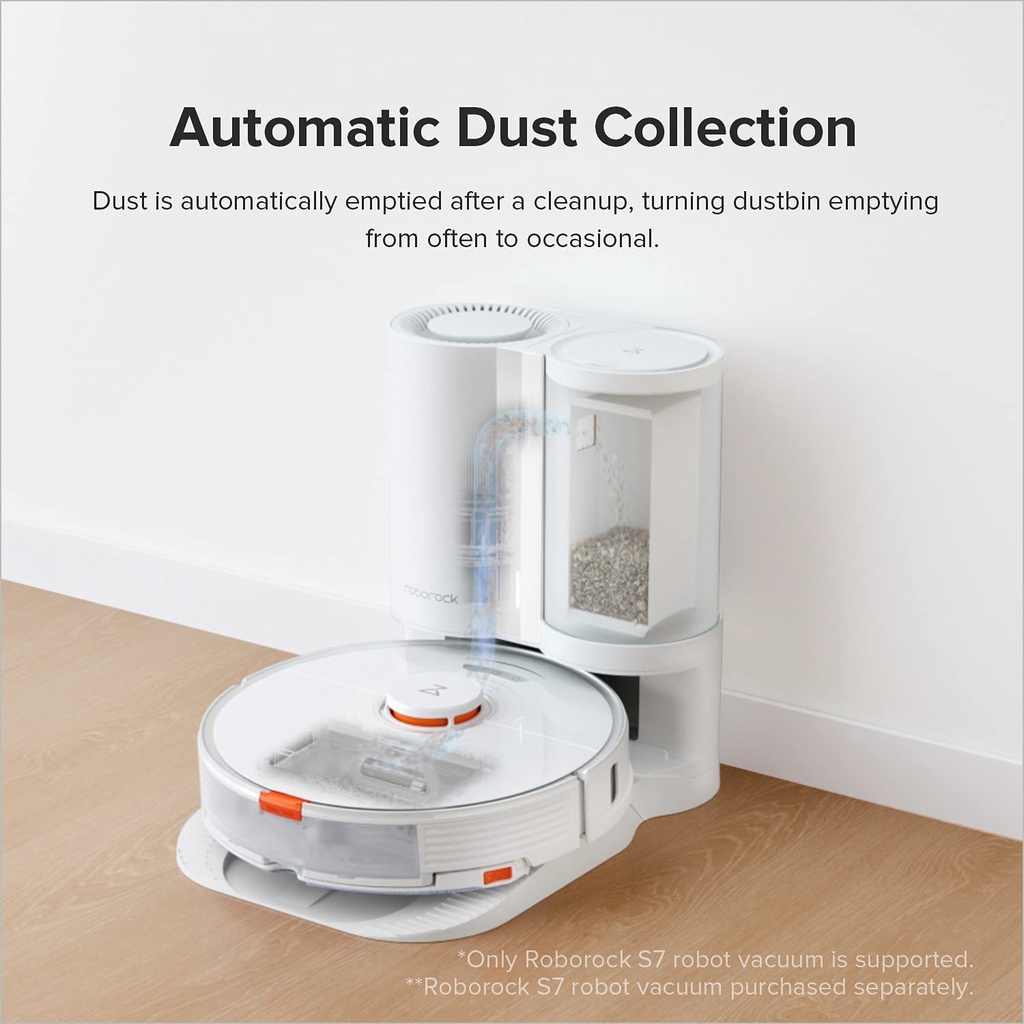 LƯU Ý: sản phẩm này tương thích với Roborock S7 và Roborock S7 MaxV- Tự động hút rác: Rác sẽ tự động được làm sạch sau khi dọn dẹp, biến việc đổ rác từ thường xuyên sang không thường xuyên.