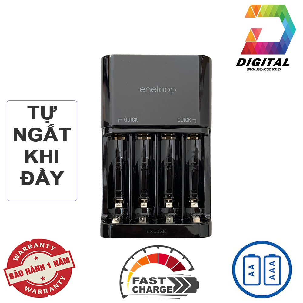 - Thời gian sạc: 4 pin AA eneloop 1900mAh khoảng 220 phút ; 4 pin AAA eneloop 750mAh khoảng 200 phút.