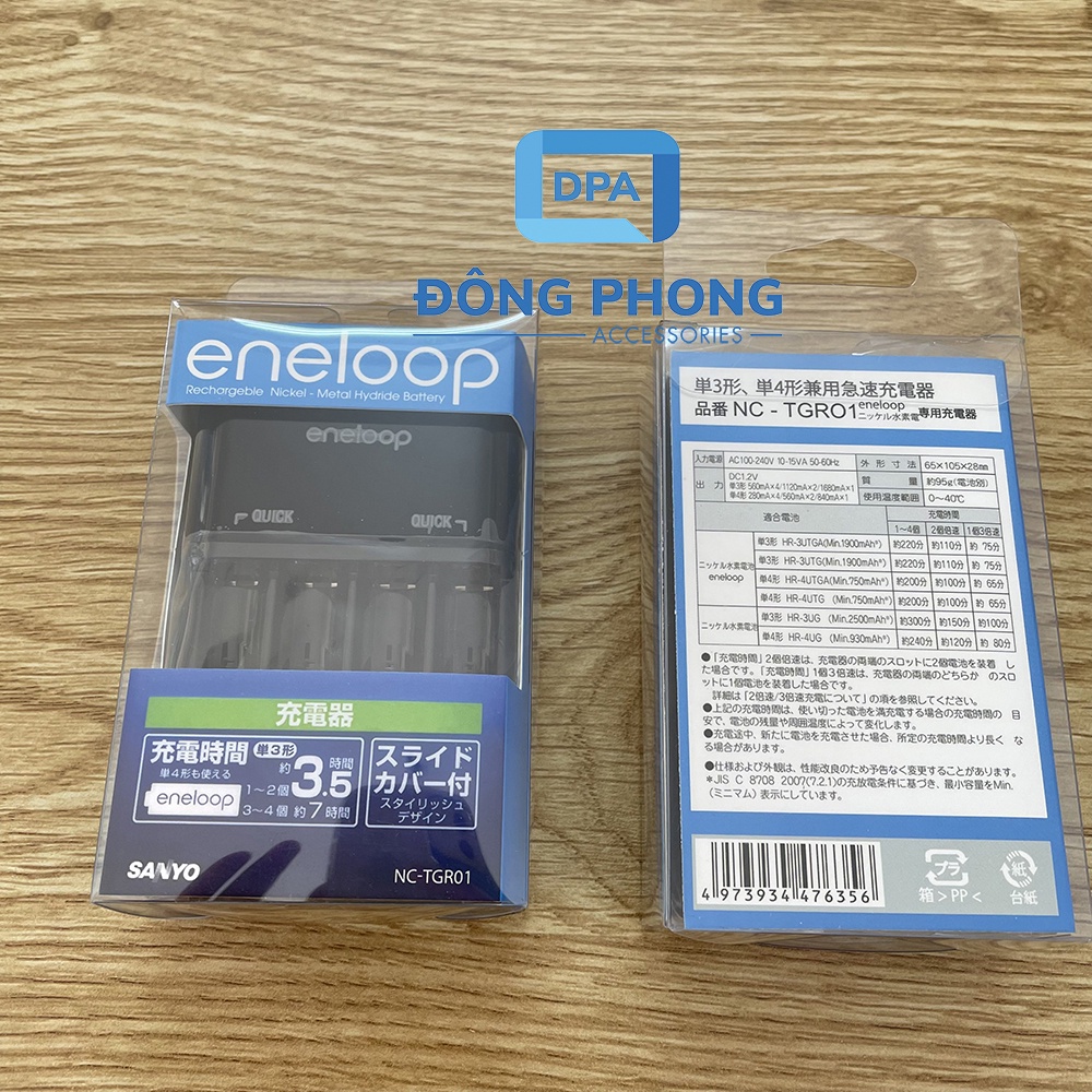 - Sạc pin Eneloop Pro ( mã NC-TGR01 ) thiết kế gọn nhẹ với vỏ ngoài màu đen bóng, dễ dàng mang theo và sử dụng bất kỳ nơi nào có nguồn điện 100-240V. Người dùng có thể sạc cùng lúc 2 hoặc 4 pin AA/AAA NiMh. Với thiết kế tiện lợi có đèn tín hiệu báo pin sạc đầy, Eneloop sẽ là một phụ kiện tuyệt vời để đáp ứng hiệu quả nhu cầu cao sử dụng pin sạc của bạn.