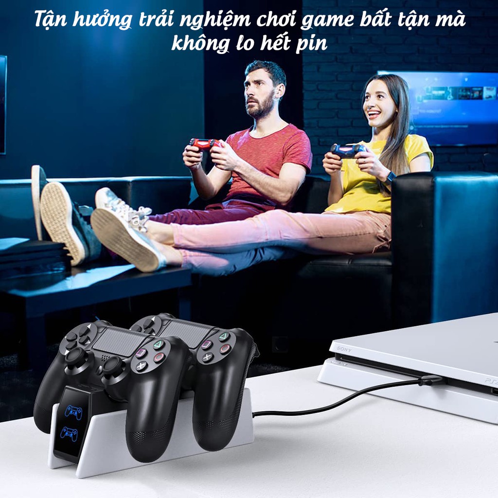Bộ sạc đôi tay cầm PS4 là sản phẩm thiết kế hoàn hảo cho bạn, hỗ trợ sạc cho 2 tay cầm cùng lúc.