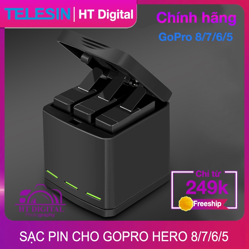 Cameras & Flycam > Phụ kiện máy ảnh > Bộ sạc pin || Dock Sạc Telesin 3 Pin Cho Máy Quay GoPro Hero 5 6 7 8 (Hàng Chính Hãng)Còn hàng