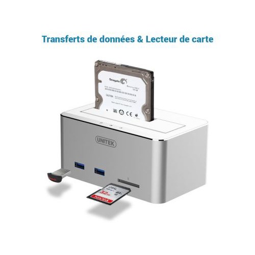 Docking ổ cứng đa năng Unitek Y1092 usb 3.0 hợp kim nhôm ổ cứng HDD 2.5 3.5 inch Hub 2 cổng USB 3.0 + đọc thẻ nhớ SD