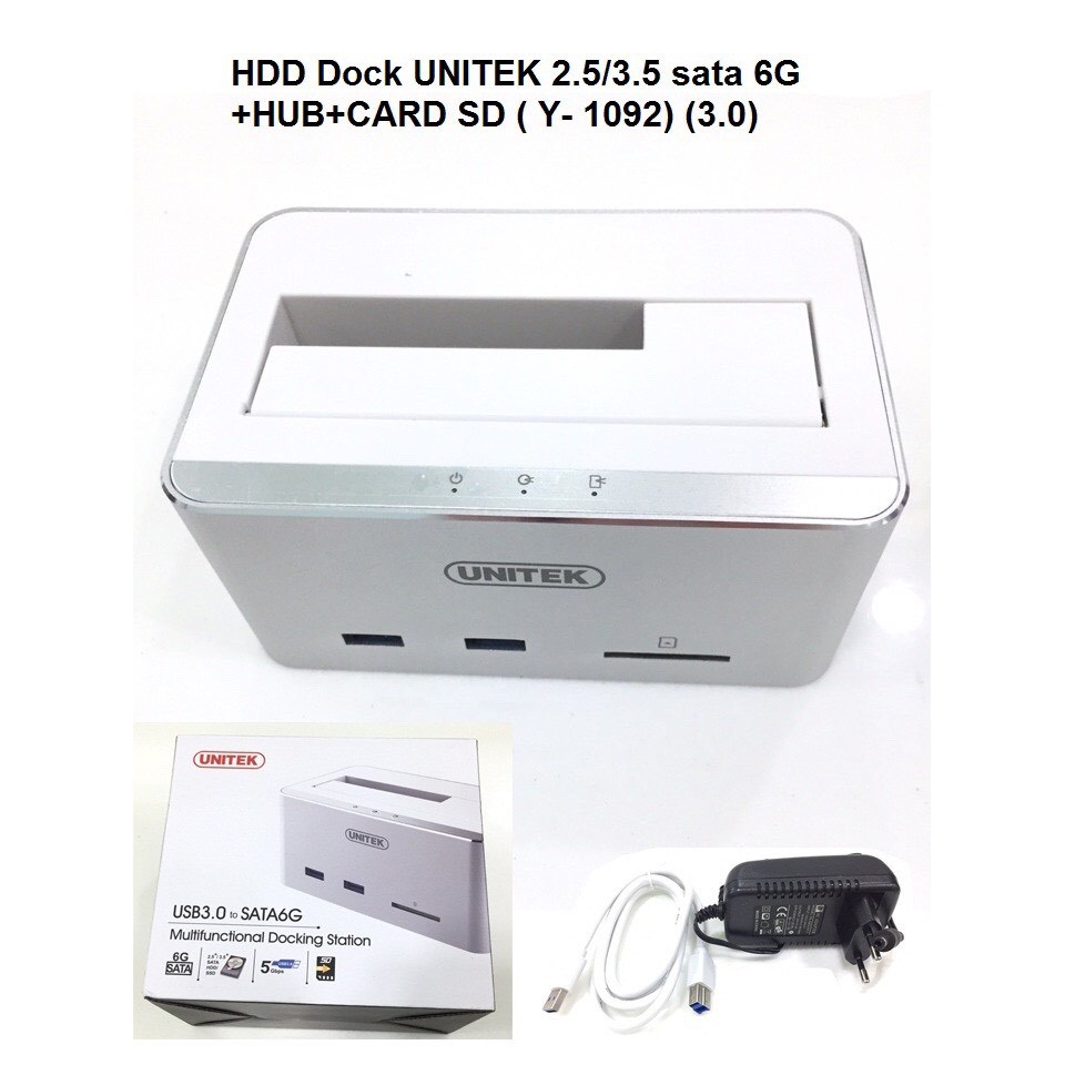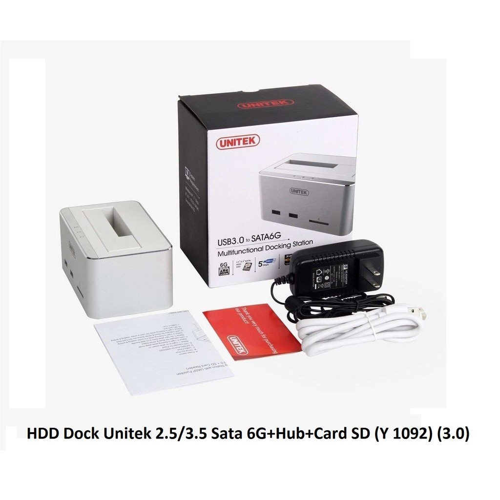 Giới thiệu Docking ổ cứng đa năng Unitek Y1092 usb 3.0 hợp kim nhôm ổ cứng HDD 2.5 3.5 inch Hub 2 cổng USB 3.0 + đọc thẻ nhớ SD