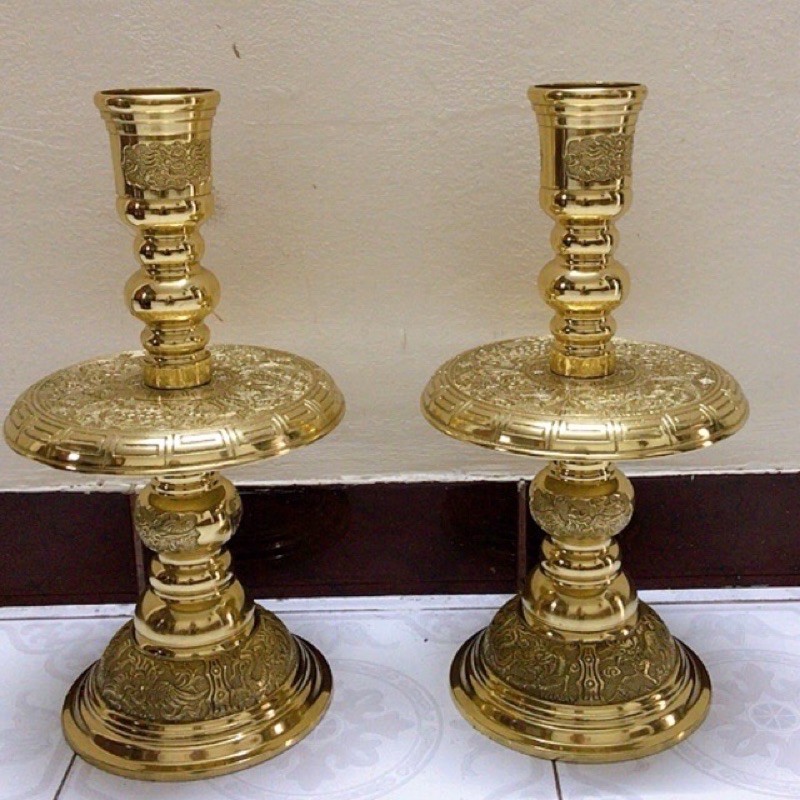 - Đôi chân nến bằng đồng họa tiết tứ linh đúc tinh xảo sắc nét.- Chiều cao: 40cm