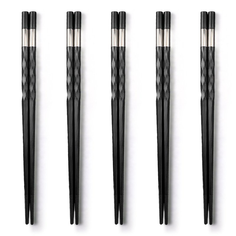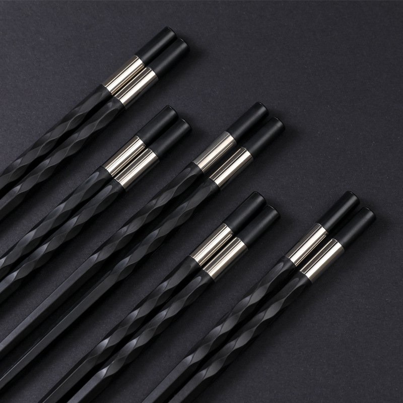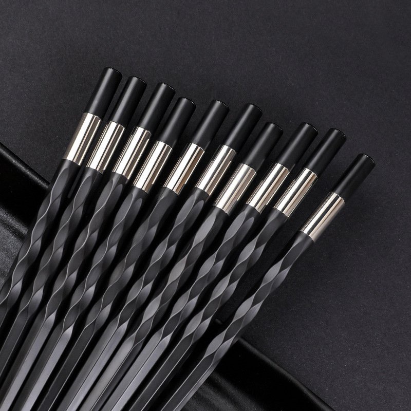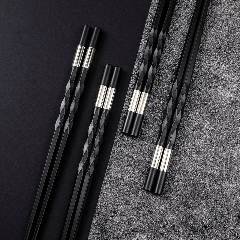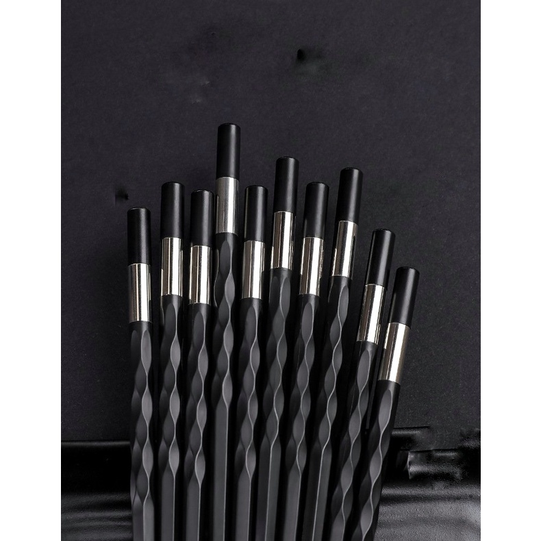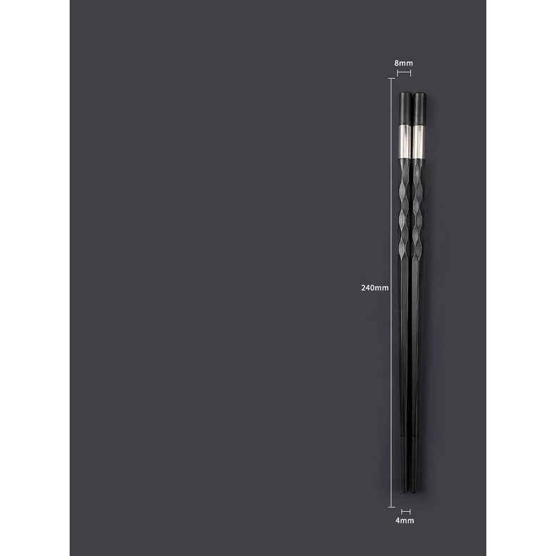 Đôi đũa đen thân xoắn viền bảng trắng bạc phong cách Nhật Bản dùng ăn cơm bằng nhựa cao cấp chịu nhiệt chống trơn tốt