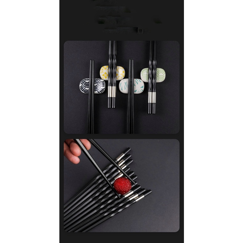 Giới thiệu Đôi đũa đen thân xoắn viền bảng trắng bạc phong cách Nhật Bản dùng ăn cơm bằng nhựa cao cấp chịu nhiệt chống trơn tốt