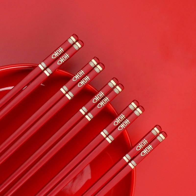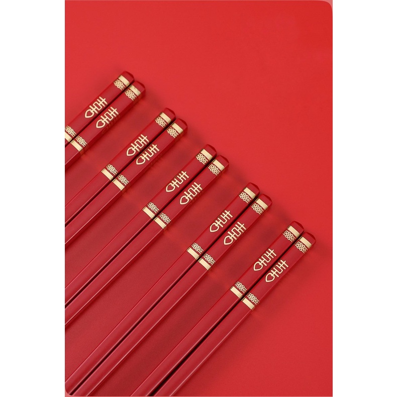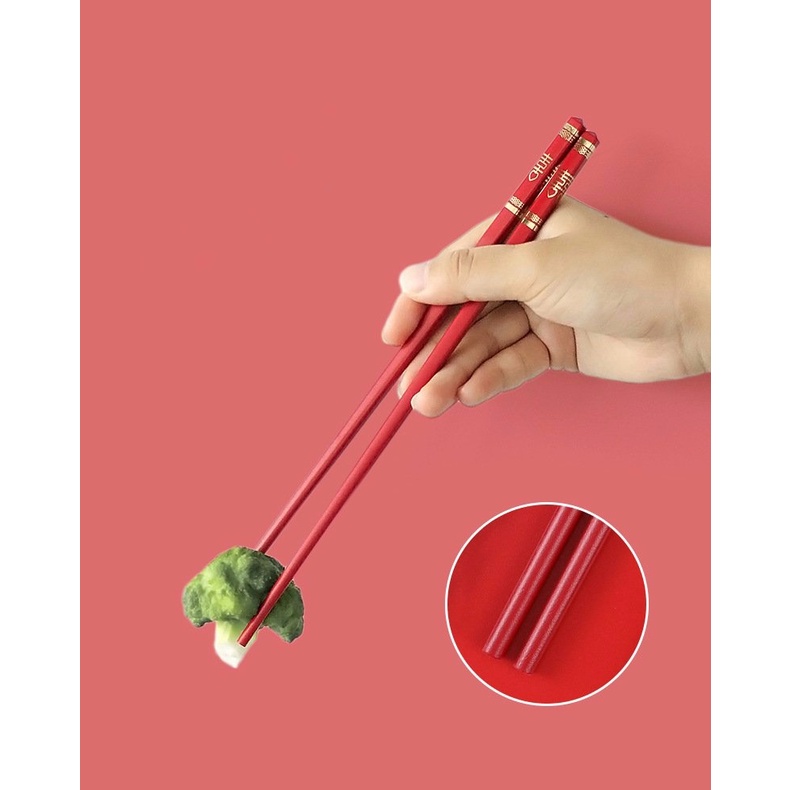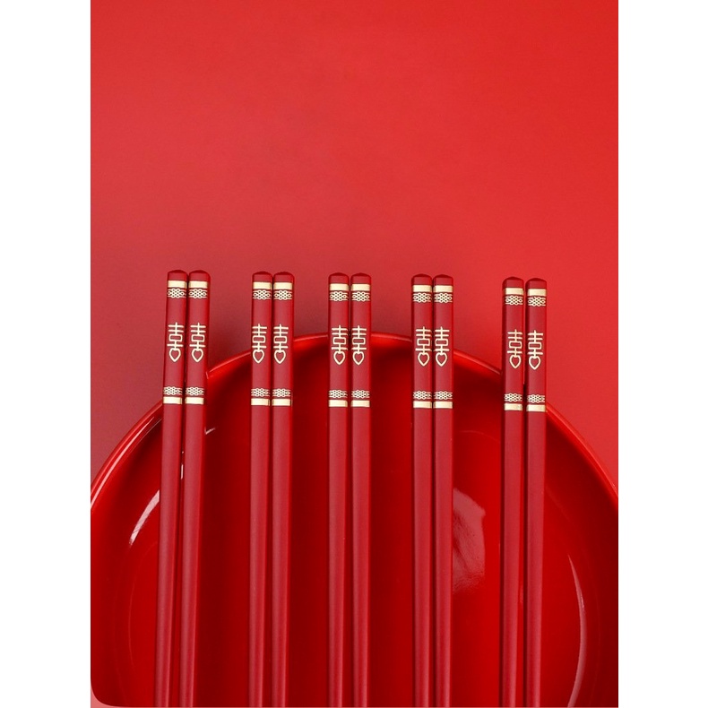 Đôi đũa nhựa chữ Hỷ đỏ dùng ăn cơm tiệc cao cấp chịu nhiệt chống trơn tốt, phụ kiện bàn ăn nhà hàng cưới sang trọng