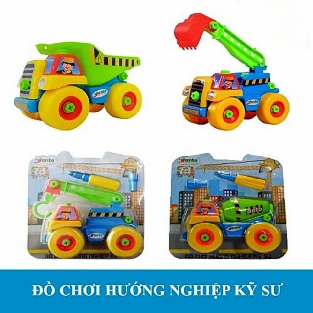 Đội kỹ sư tài ba – Xe cẩu xúc 3 được lắp ghép từ 29 chi tiết khác nhau. Ba mẹ có thể tháo rời sản phẩm sau đó để bé tập lắp ráp để rèn luyện tính kiên trì và đầu óc từ duy của trẻ. Ba mẹ cũng có thể gợi ý cách lắp sản phẩm cho các bé theo tờ hướng dẫn trong bộ sản phẩm: lắp thân xe, lắp bánh xe, lắp đầu xe, lắp trục cần cẩu.+ Các chi tiết được ghép với nhau bởi các ốc vít, Ba mẹ hướng dẫn bé sử dụng tu vít có sẵn trong bộ sản phẩm để lắp ghép để giúp bé học kỹ năng sử dụng các công cụ, dụng cụ.