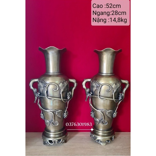 Nhà cửa & Đời sống > Trang trí nhà cửa > Bình trang trí || Đôi lọ hoa bằng đồng , lục bình bằng đồng hoa văn đúc nổi cao 52cmCòn hàng