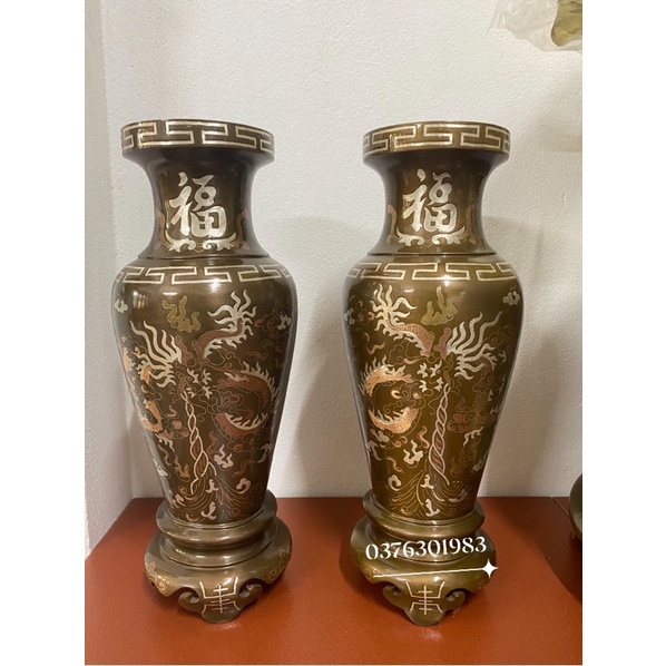 sản phẩm là một đôi lọ hoa cao 38cmhàng được đúc từ đồng đỏ nguyên chất