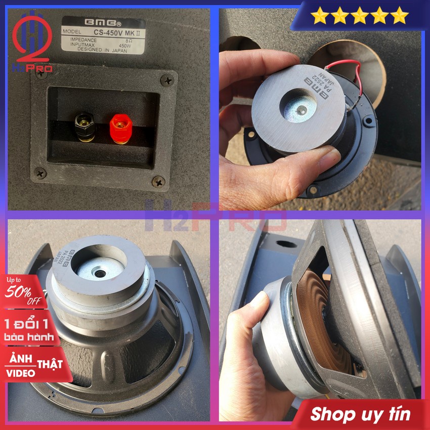 - Trọn bộ sản phẩm gồm: 2 loa BMB CS-450V MKII và 10m dây loa do H2Pro tặng