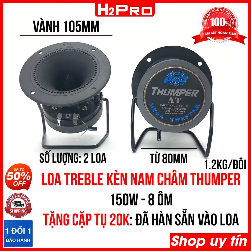 Đôi loa treble kèn Thumper H2Pro 150W-8 ôm-từ 80, loa treble nam châm rời cao cấp (tặng tụ 20K, hàn sẵn tụ vào loa)Đặc điểm nổi bật của Đôi loa treble kèn Thumper H2Pro 150W: