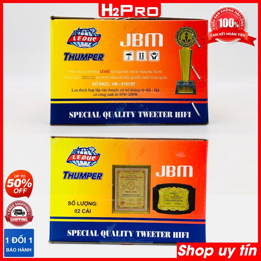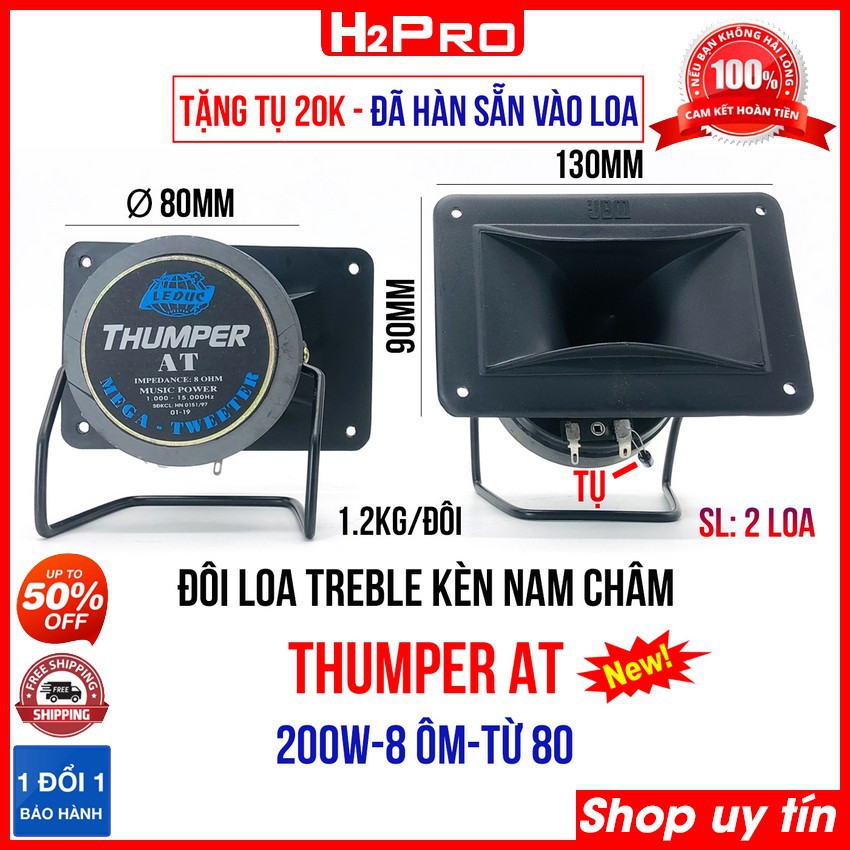 Thiết Bị Âm Thanh > Dàn âm thanh > Loa || Đôi loa treble kèn Thumper H2Pro 150W-8 ôm-từ 80-mặt 13x9cm, loa treble nam châm rời cao cấp (tặng tụ 20K, hàn sẵn tụ)Còn hàng