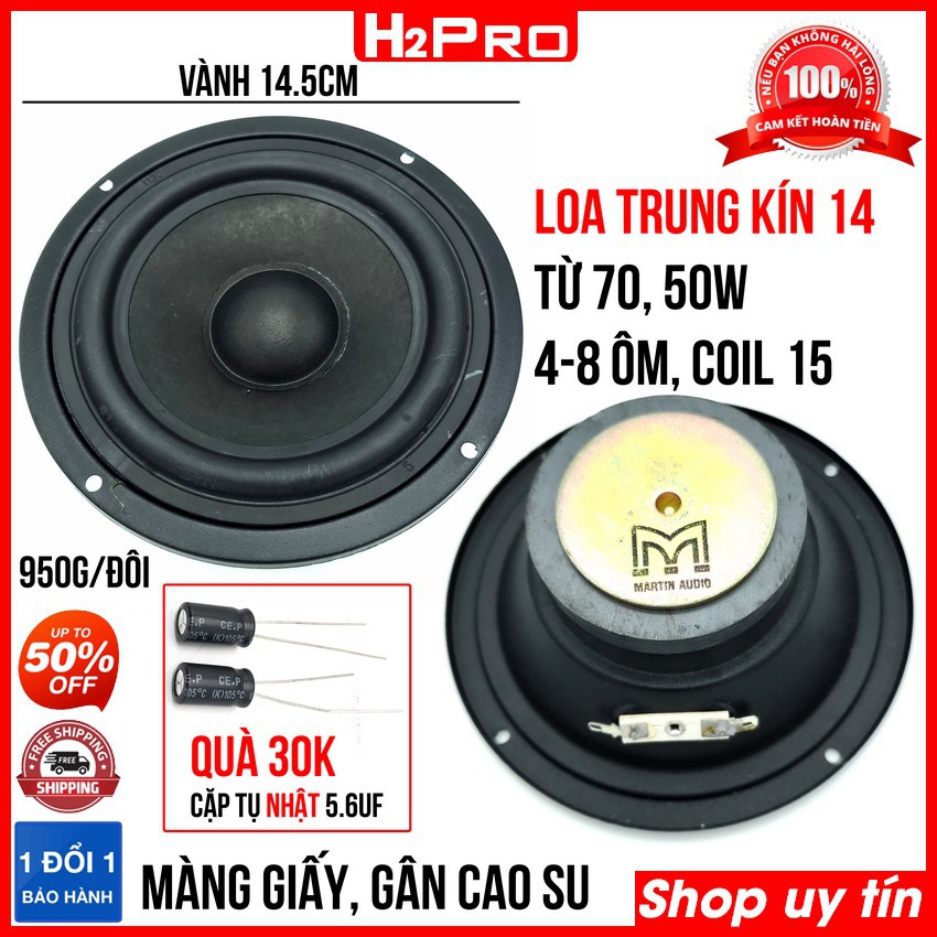 Đôi loa trung 14 Martin Audio H2Pro, công suất 50W-từ 70 (2 loa), loa trung kín rời 14 cao cấp tiếng rõ, sáng tặng 2 tụ