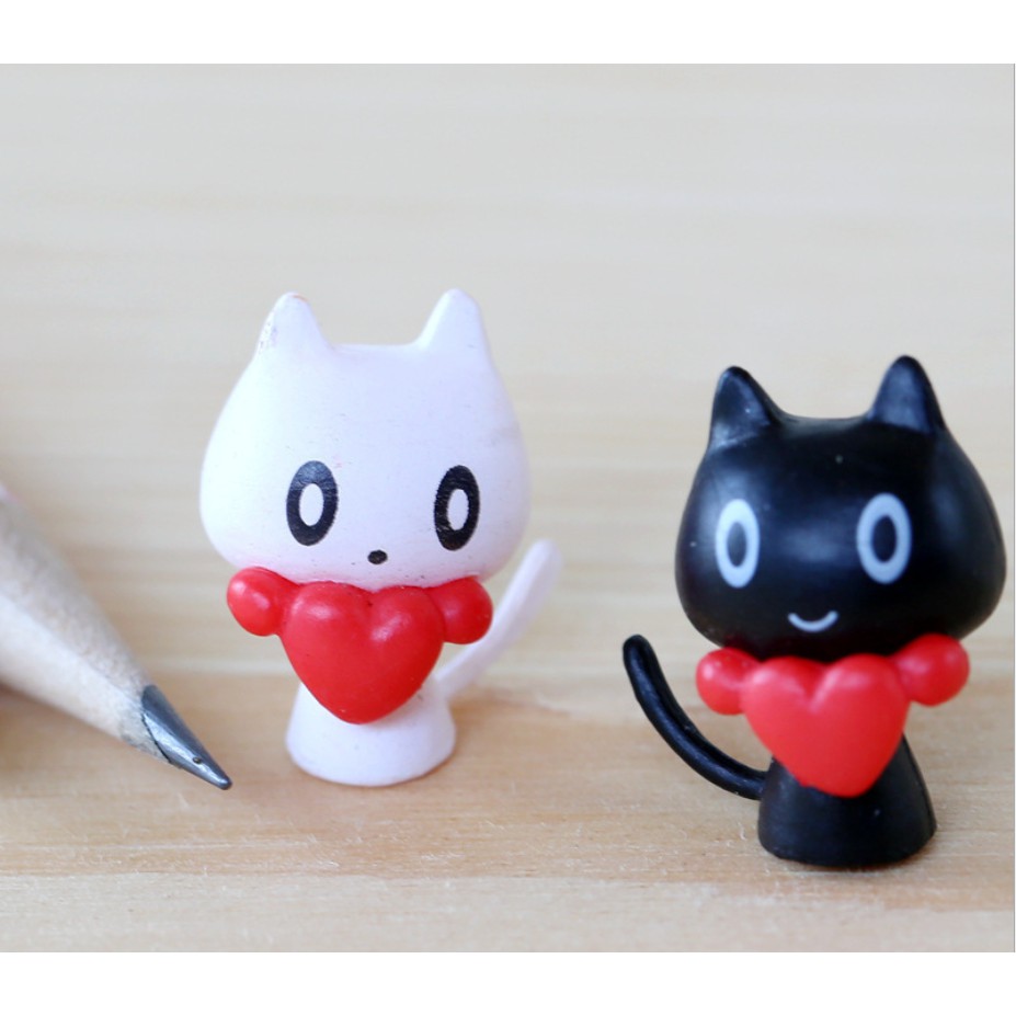 Giới thiệu Đôi mèo đen trắng cổ thắt nơ hình tim để trang trí nhà búp bê, khung tranh, tiểu cảnh DIY