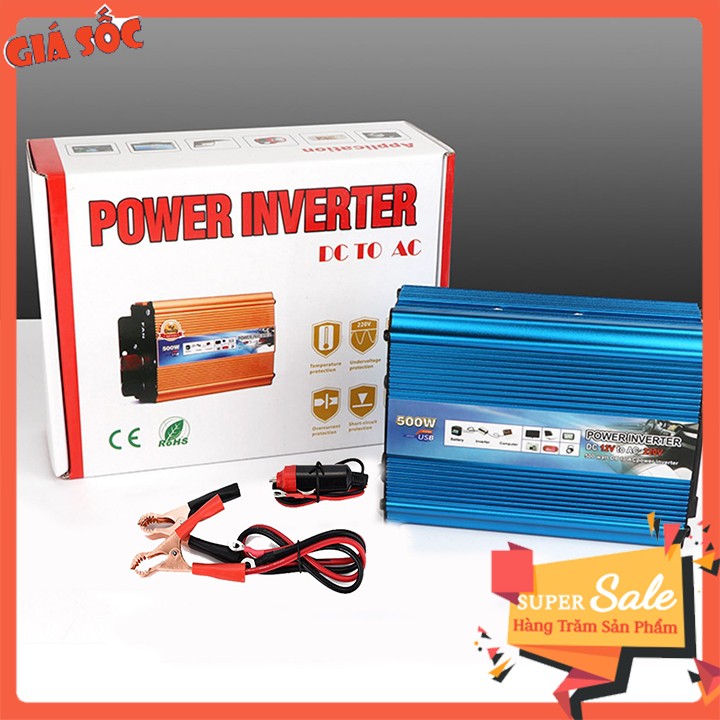 - Với bộ kích điện công suất 500W thì đáp ứng được các nhu cầu sài điện khác nhau: bóng đèn, quạt, tivi led...khi sử dụng các sản phẩm, bạn cần xem công suất của thiết bị đó hoặc tổng công suất của các thiết bị có vượt quá công suất của bộ đổi điện hay không?