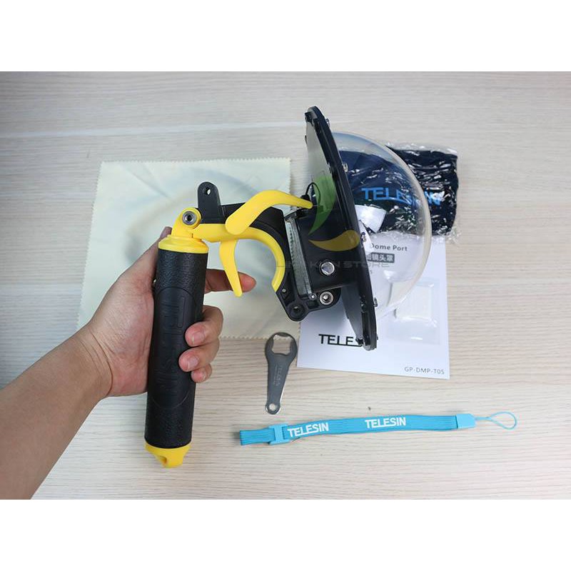 Bao gồm: 1 Dome port, 1 tay cầm, 1 tay cầm hỗ trợ bấm nút quay, 1 cờ-lê, 1 gói hút ẩm, 1 khăn lau, 1 mũ bọc Dome.