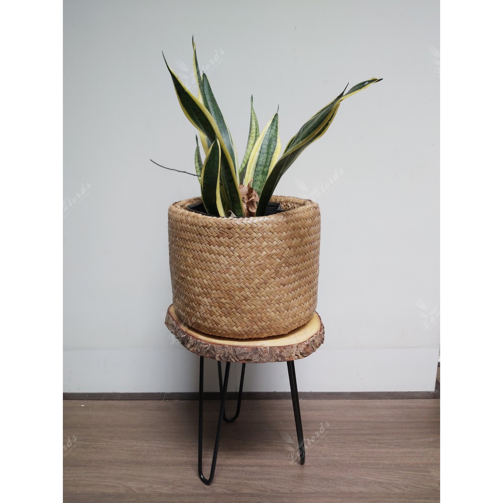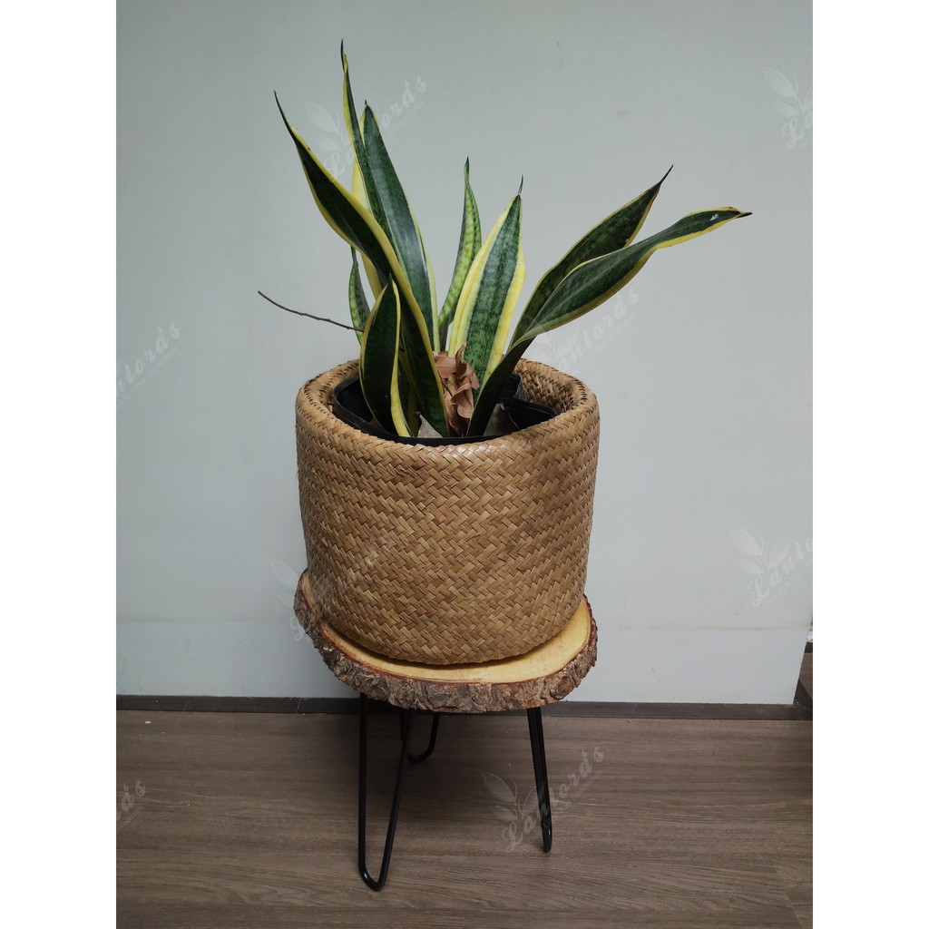 Giới thiệu Đôn để chậu cây bằng khoanh gỗ me tây đường kính 30-35cm và chân sắt sơn tĩnh điện
