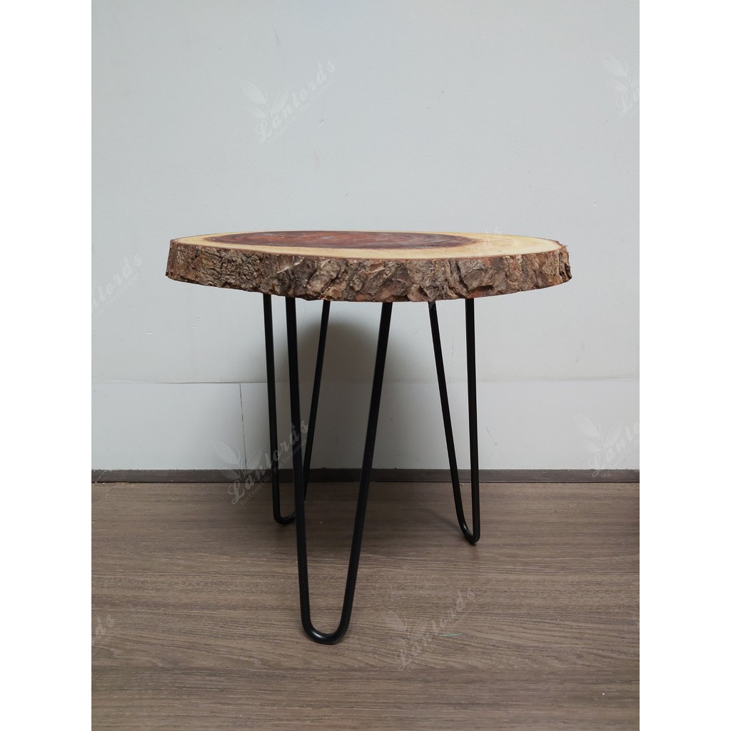 Đôn để chậu cây bằng khoanh gỗ me tây đường kính 30-35cm và chân sắt sơn tĩnh điện
