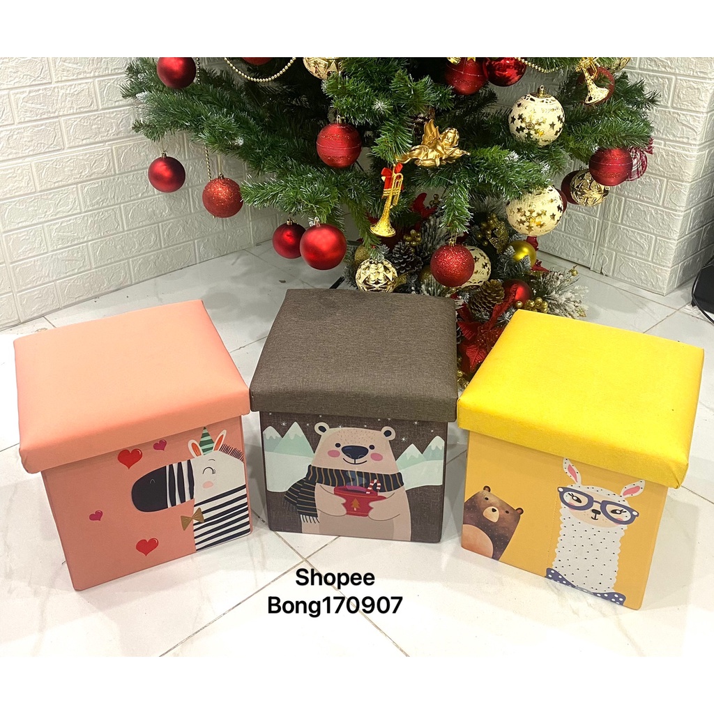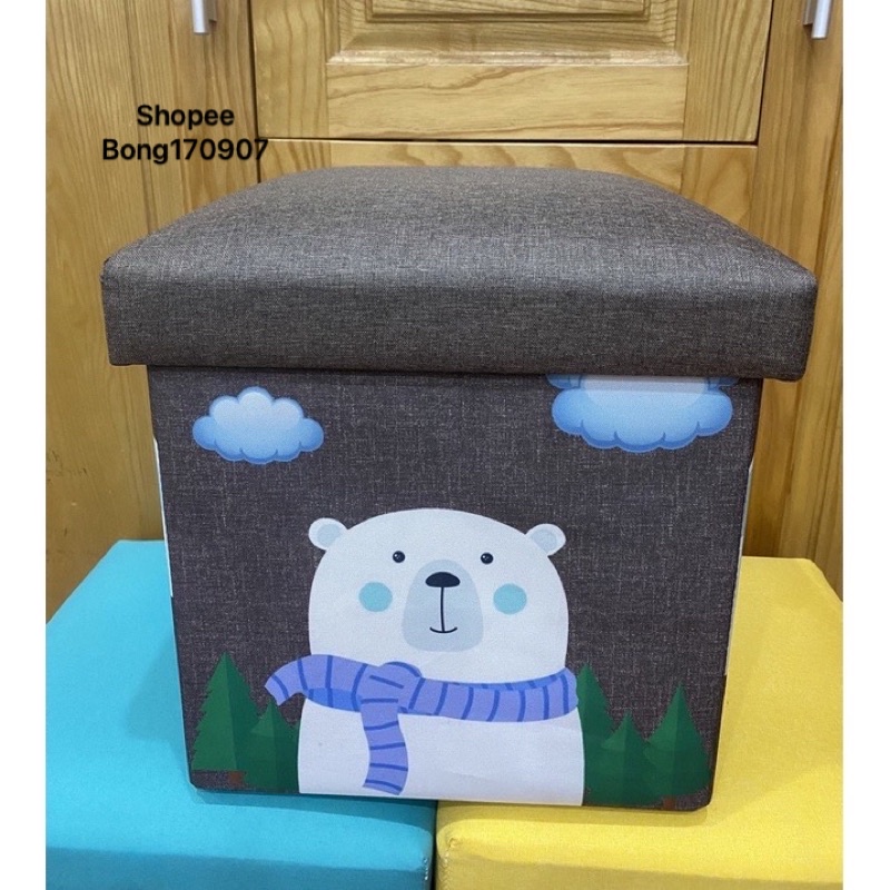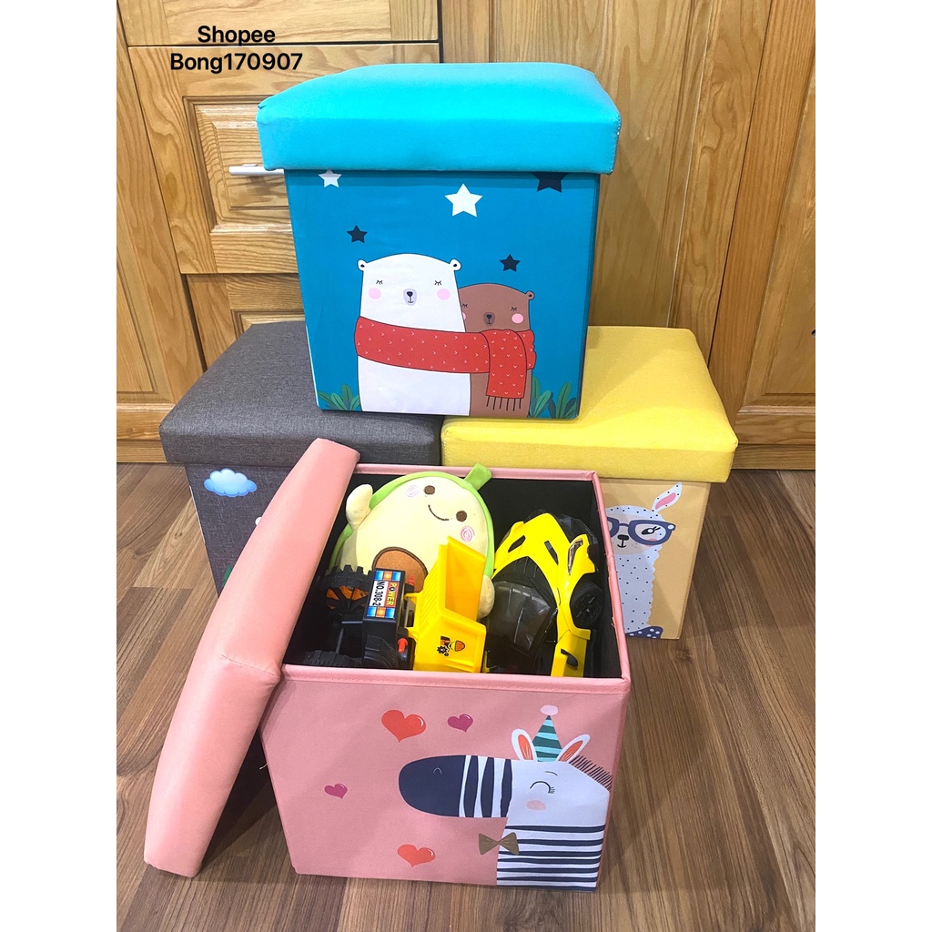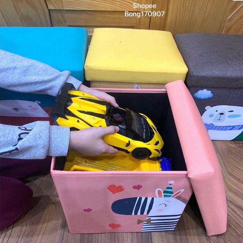Đôn ghế trẻ em kiêm hộp đựng đồ đáng yêu chất vải oxfort 600d cứng cáp in công nghệ kĩ thuật số✅KT: 31x31xCao31 cm