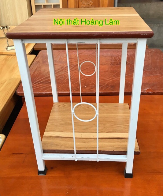 * Chất liệu : sắt hộp cao cấp phun sơn tĩnh điện nhiều lớp bóng đẹp kết hợp với mặt gỗ công nghiệp phủ melamin chống xước, chống ẩm.