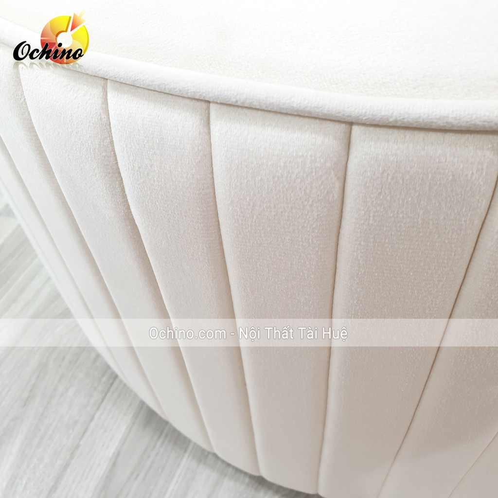 ⚜️Chiếc ghế đôn tròn được bao quanh bởi lớp DA hoặc vải cao cấp, bên trong đệm bông bảo cảm giác êm ái. Ngoài ra, để tăng thêm tính thẩm mỹ, chúng còn được tạo nên đường xếp ly đơn giản nhưng sang trọng