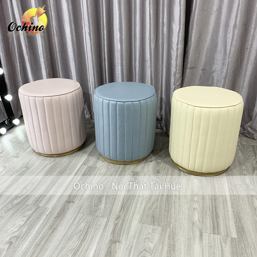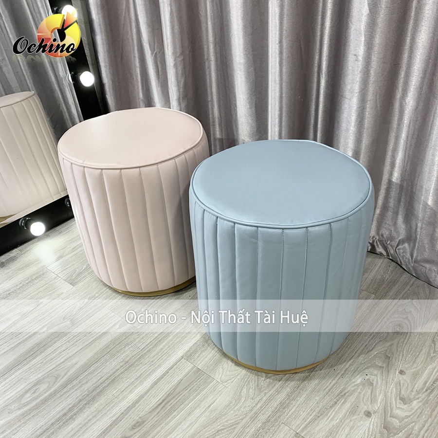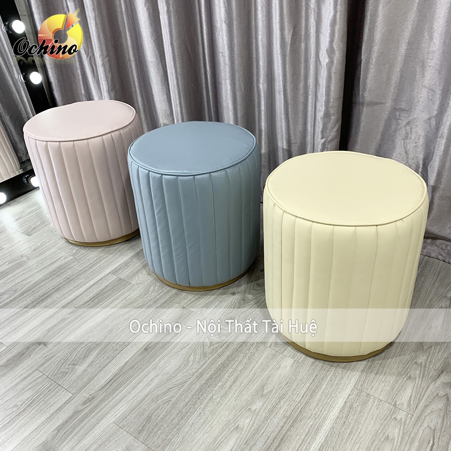 Giới thiệu Đôn Tròn Trang Điểm Bọc Da Chân Vàng Cách điệu siêu Xinh (Hàng có sẵn)