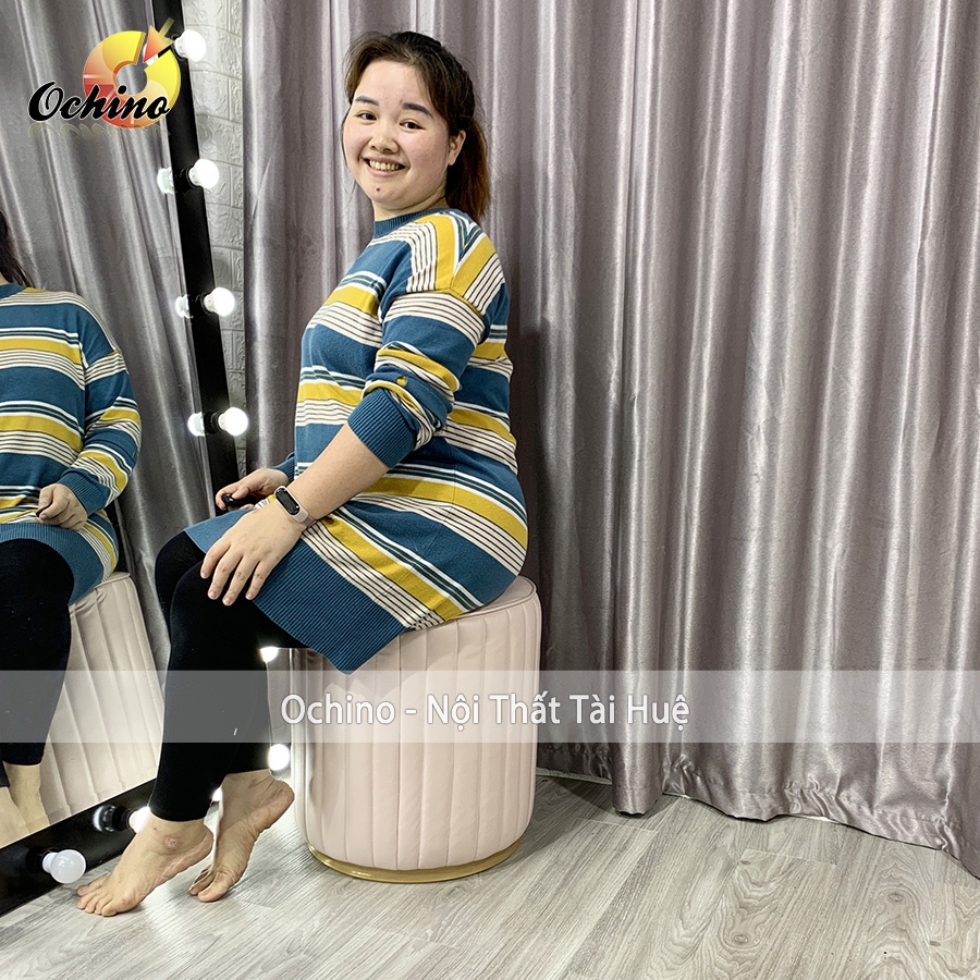 Đôn Tròn Trang Điểm Bọc Da Chân Vàng Cách điệu siêu Xinh (Hàng có sẵn)