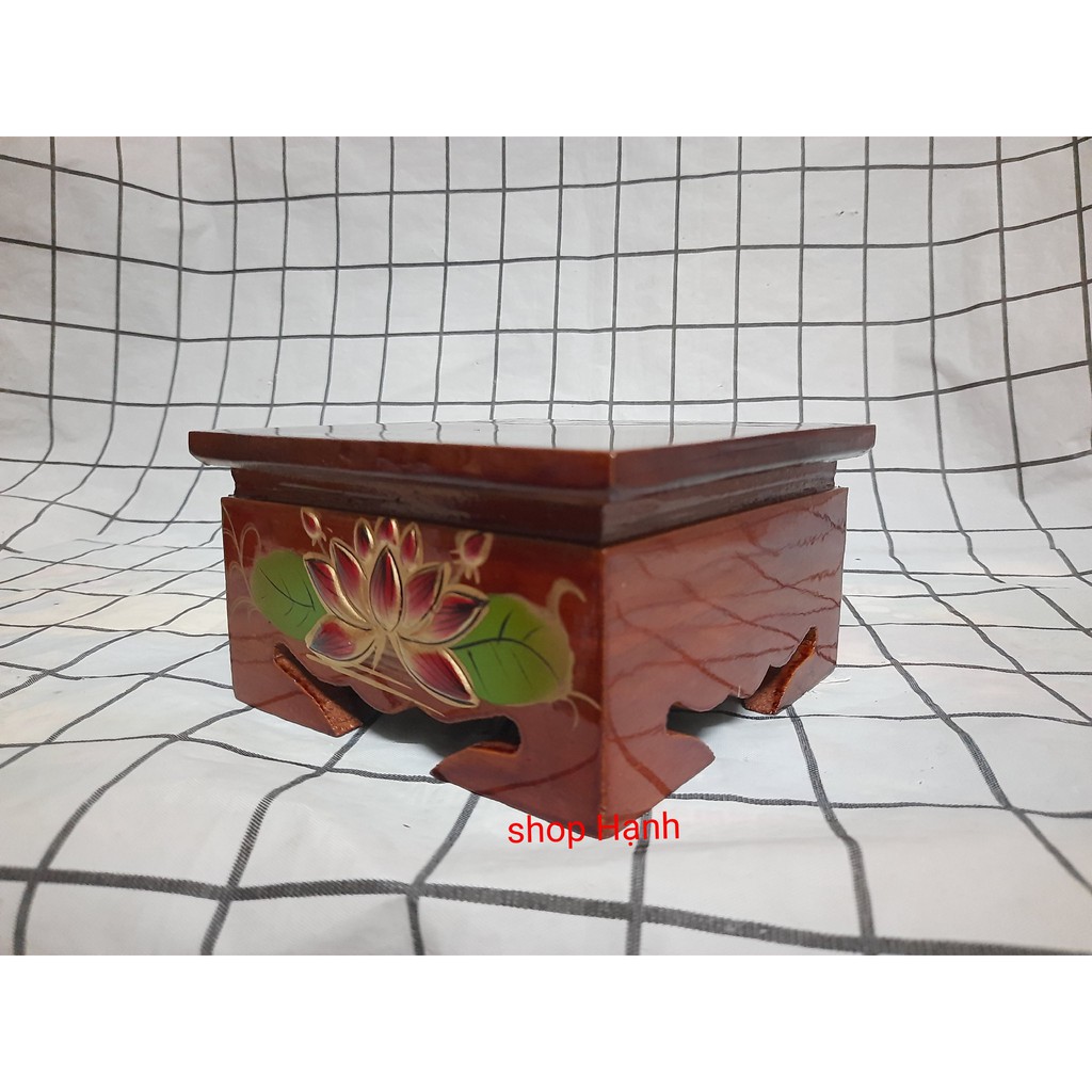 Đôn vuông chạm hoa sen cao 8 cmHiện có 4 size: 10x10 cm, 12x12 cm, 14x14 cm, 16x16 cm