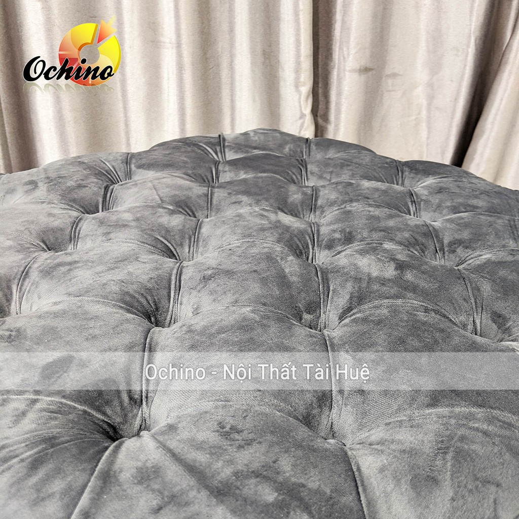 ⚜️Chiếc ghế đôn tròn được bao quanh bởi lớp DA hoặc vải cao cấp, bên trong đệm bông bảo cảm giác êm ái. Ngoài ra, để tăng thêm tính thẩm mỹ, chúng còn được tạo nên nhún lõm đính khuy sang trọng