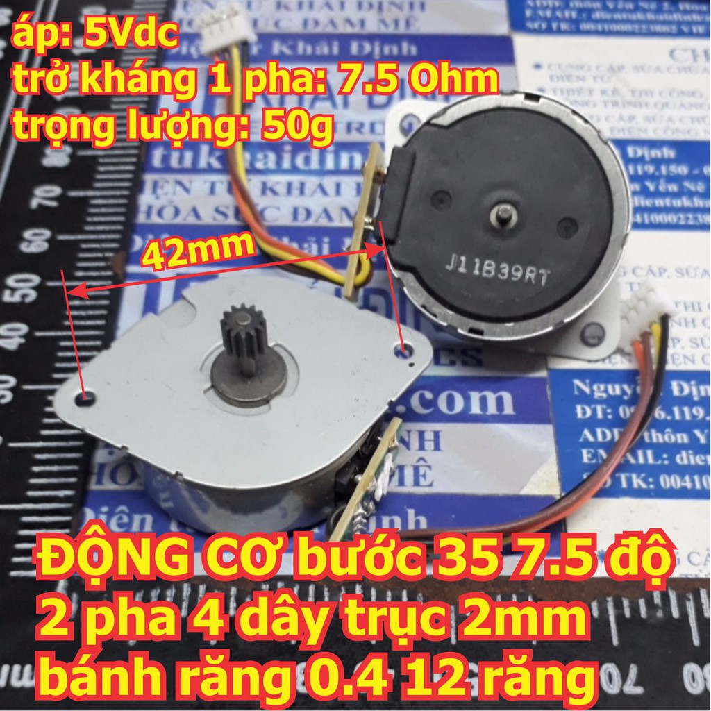 ĐỘNG CƠ bước 35 5V 7.5 độ 2 pha 4 dây trục 2mm bánh răng 0.4 12 răng kde5778