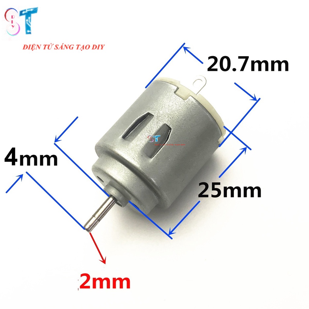 - Động cơ 140 Mini Tốc Độ Cao 3-5V được sử dụng làm khoan tốc độ cao, làm động cơ cho máy khoan mini khoan mạch điện tử, khoan nhựa, khoan gỗ...- Được dùng trong là động cơ cho các mô hình đồ chơi, rc, Robot...