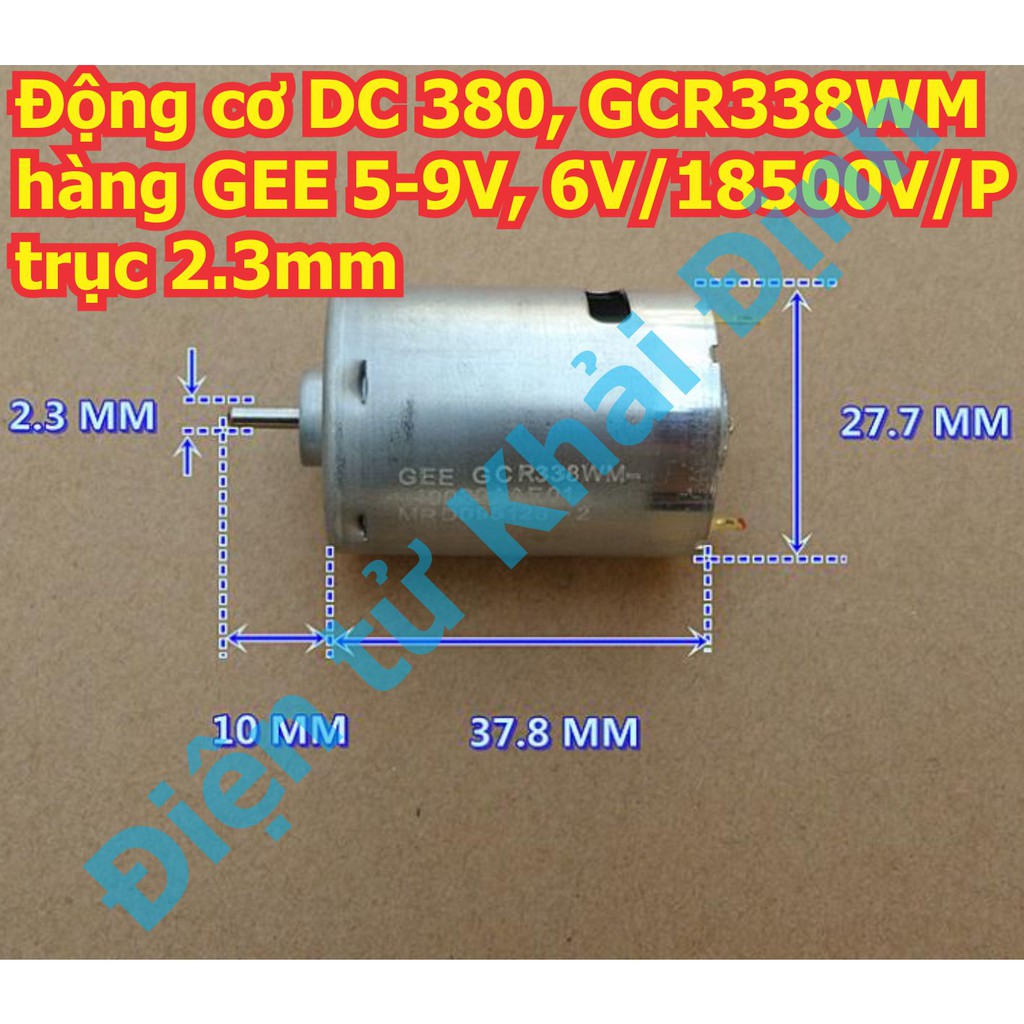 Động cơ DC 380, GCR338WM hàng GEE 5-9V, 6V/ 18500V/P trục 2.3mm kde5826