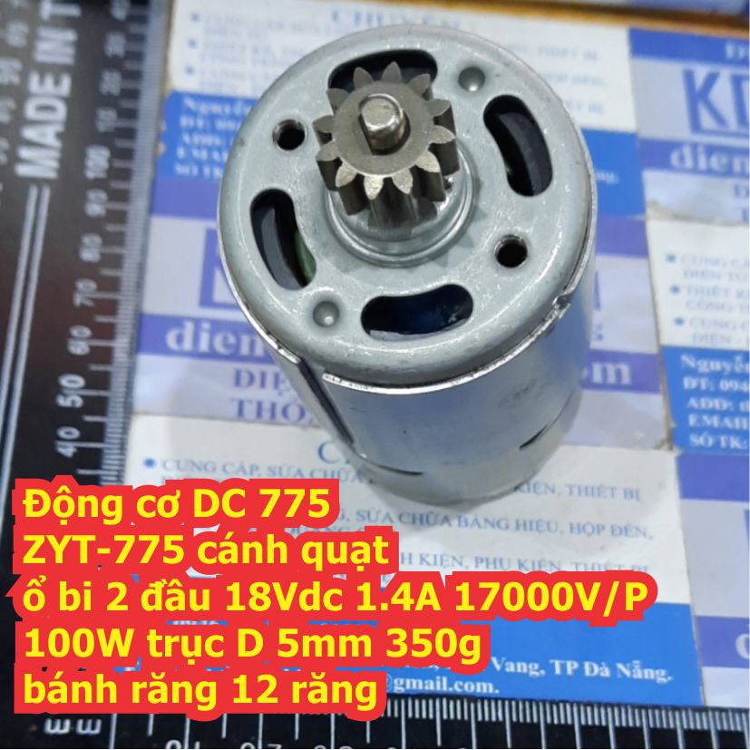 Động cơ DC 775 ZYT-775 cánh quạt, ổ bi 2 đầu 18Vdc 1.4A 17000V/P 100W trục D 5mm 350g kde7334