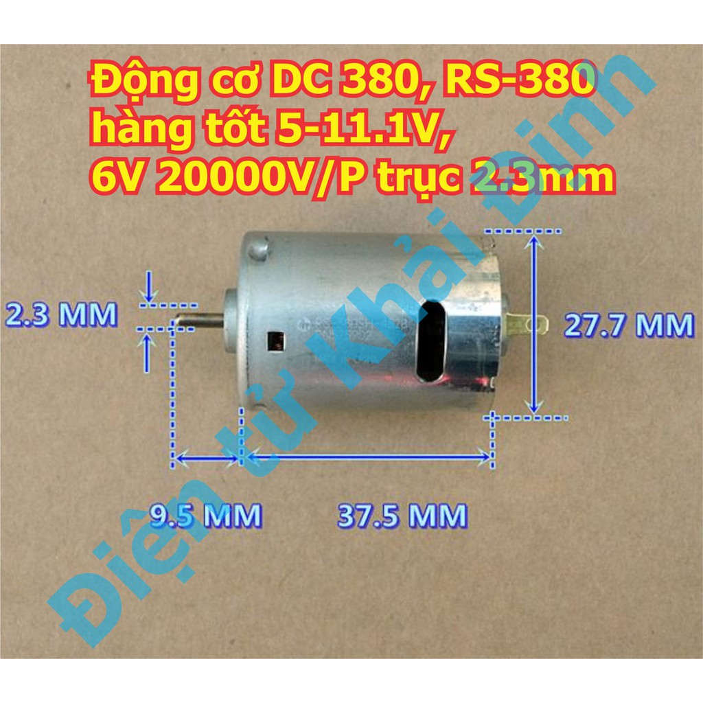 Động cơ DC Mabuchi 380, RS-380SH-4528 hàng tốt 5-11.1V, 6V/ 20000V/P trục 2.3mm kde5827