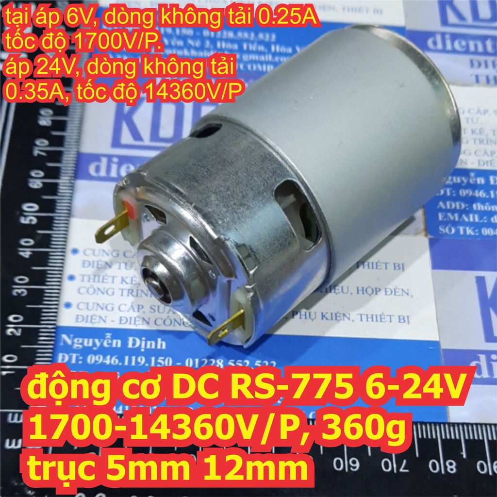 động cơ DC RS-775, 6-24V 1700-14360V/P, 360g, trục 5mm 12mm kde6859